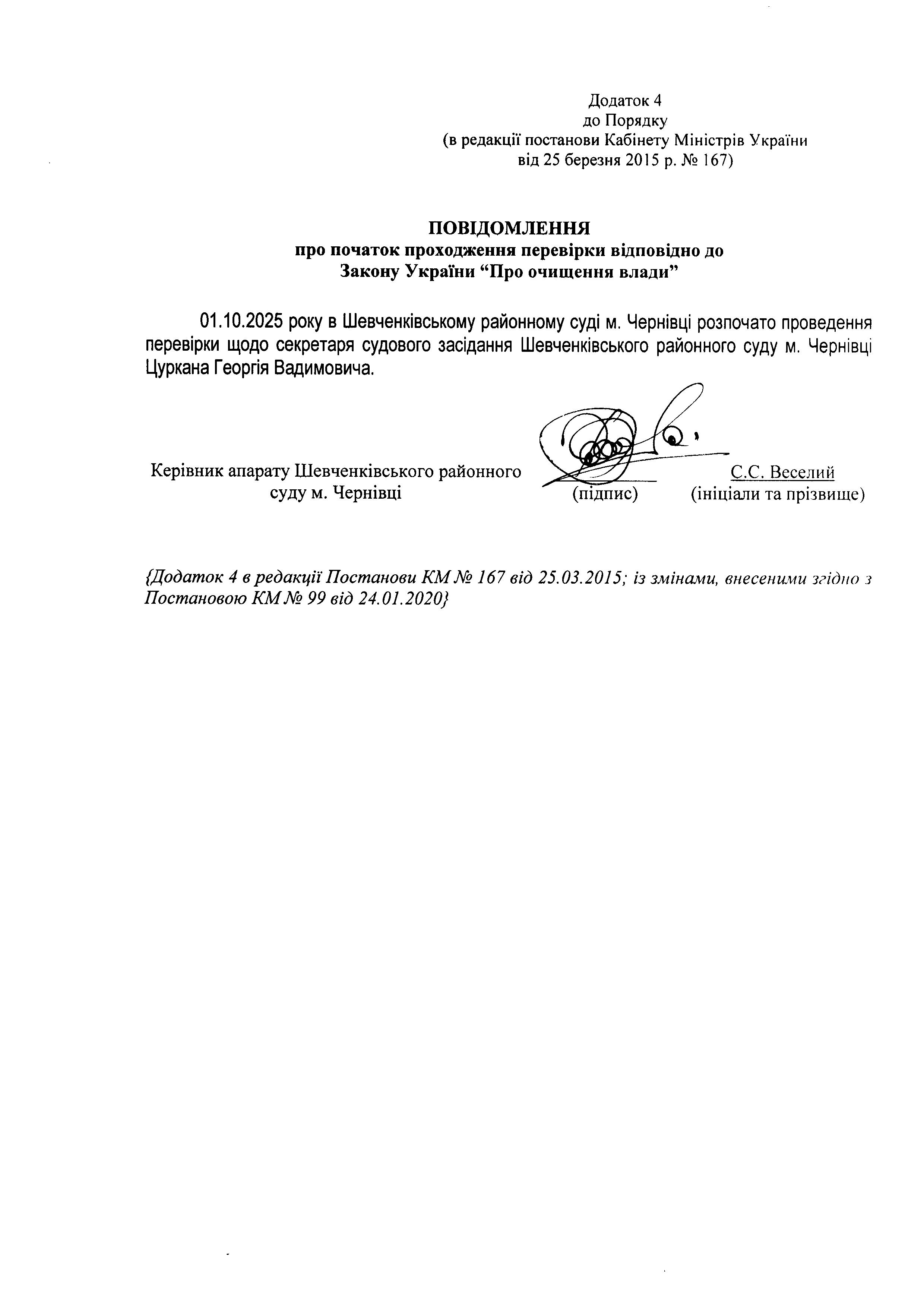 Повідомлення про початок проходження перевірки відповідно до Закону України "Про очищення влади"